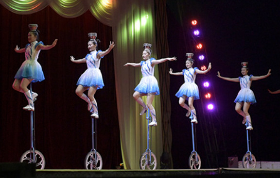 背丈を超える一輪車で登場する噂の世界的芸能芸術、中国雑技団。彼女たちが繰り出す可憐な足技。