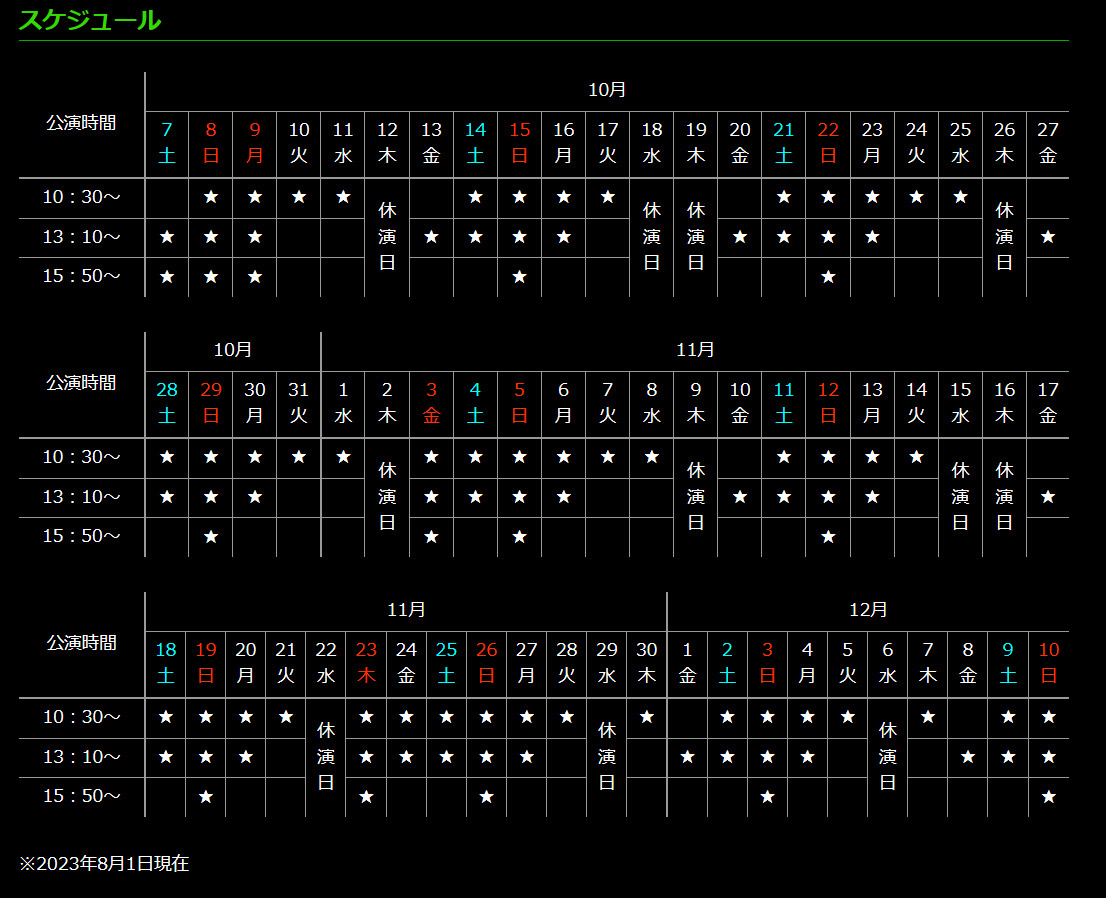 *休演日が下記スケジュールをご覧ください。