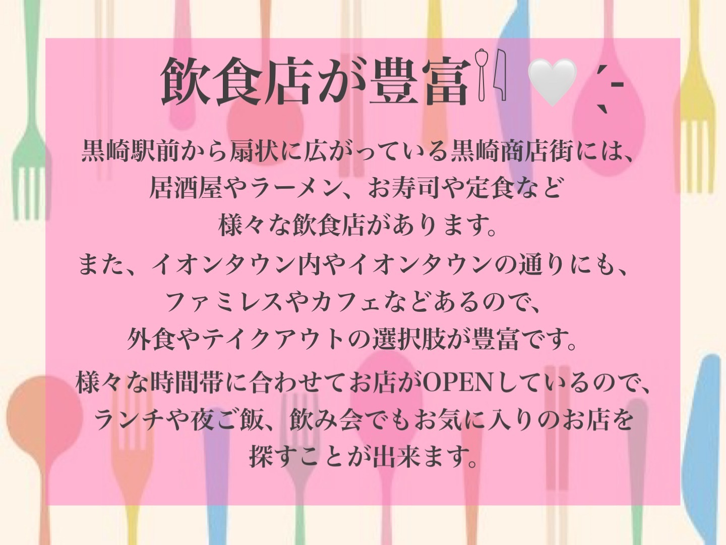 前述した、イオンタウン黒崎の周辺には、ファミリー向けのレストランや食べ物屋さんもありますので、シーンに合わせて選択することができます。